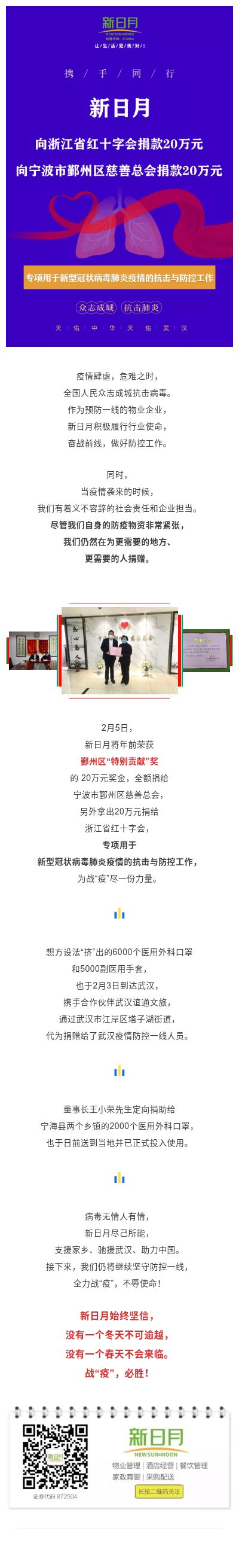 新日月再度捐款40万元,为取得战“疫”胜利增援助力