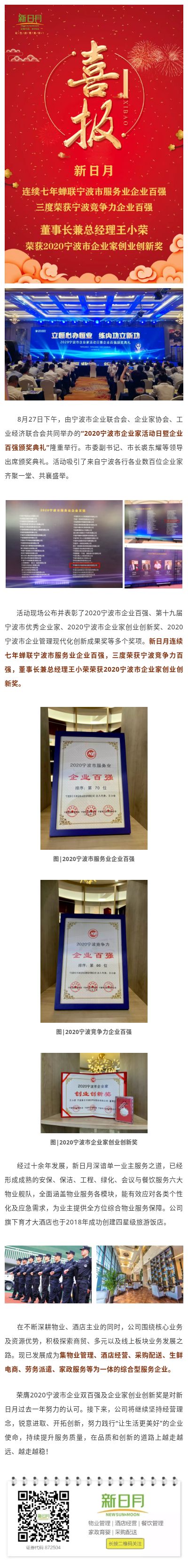 新日月荣膺2020宁波市企业双百强及企业家创业创新奖