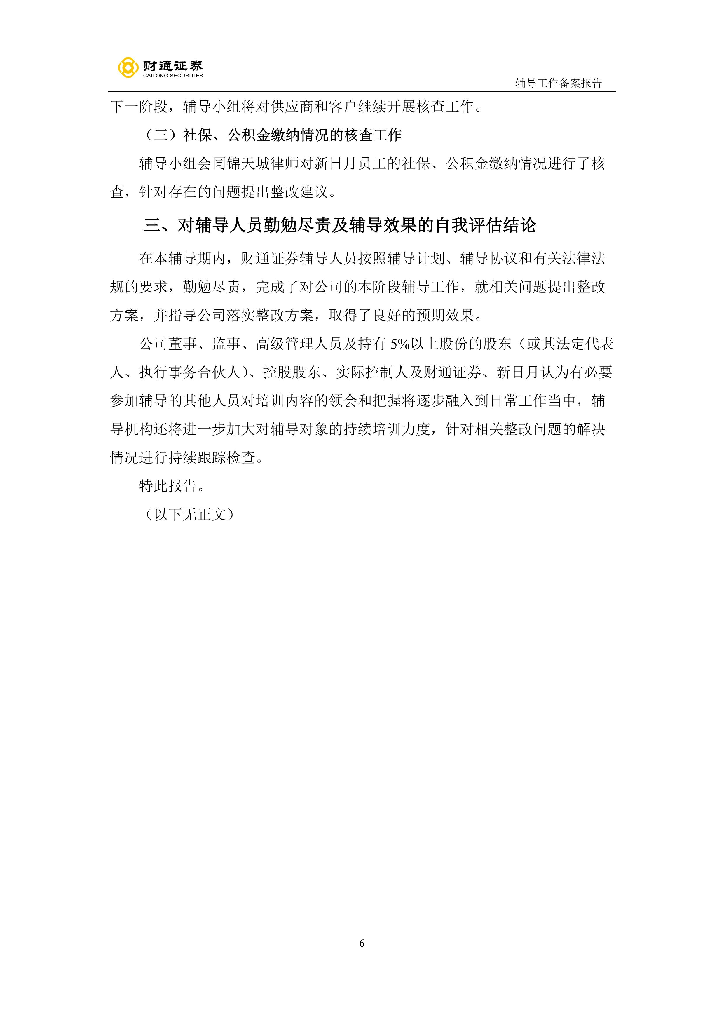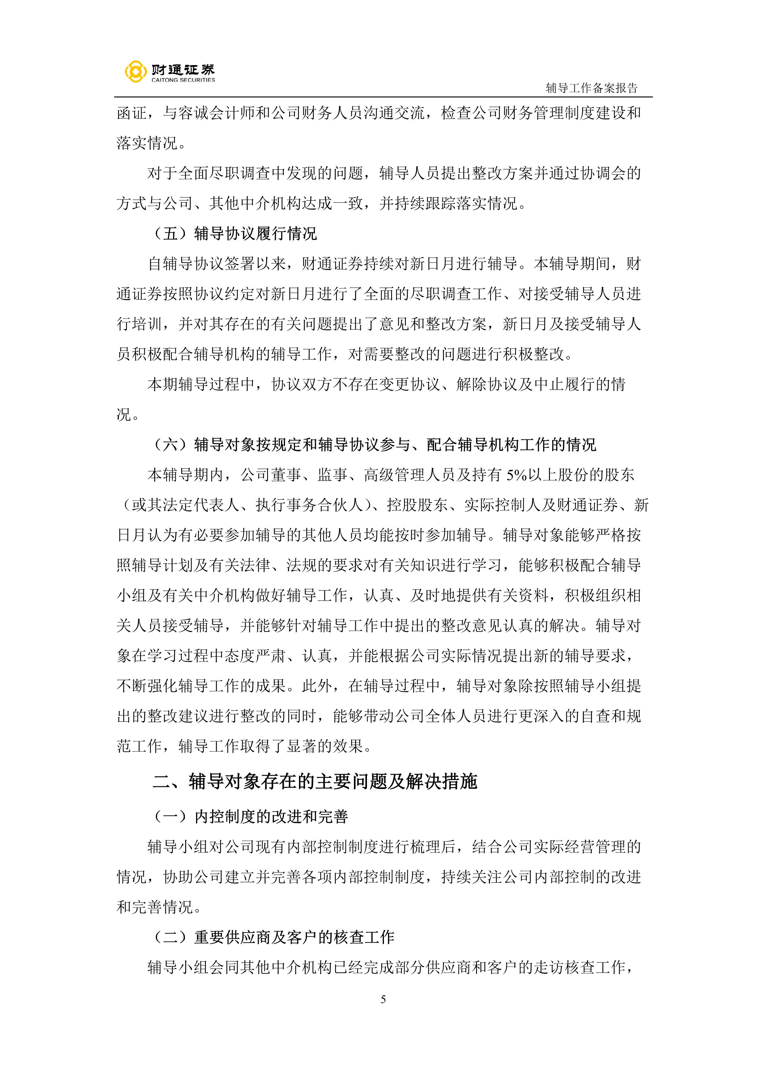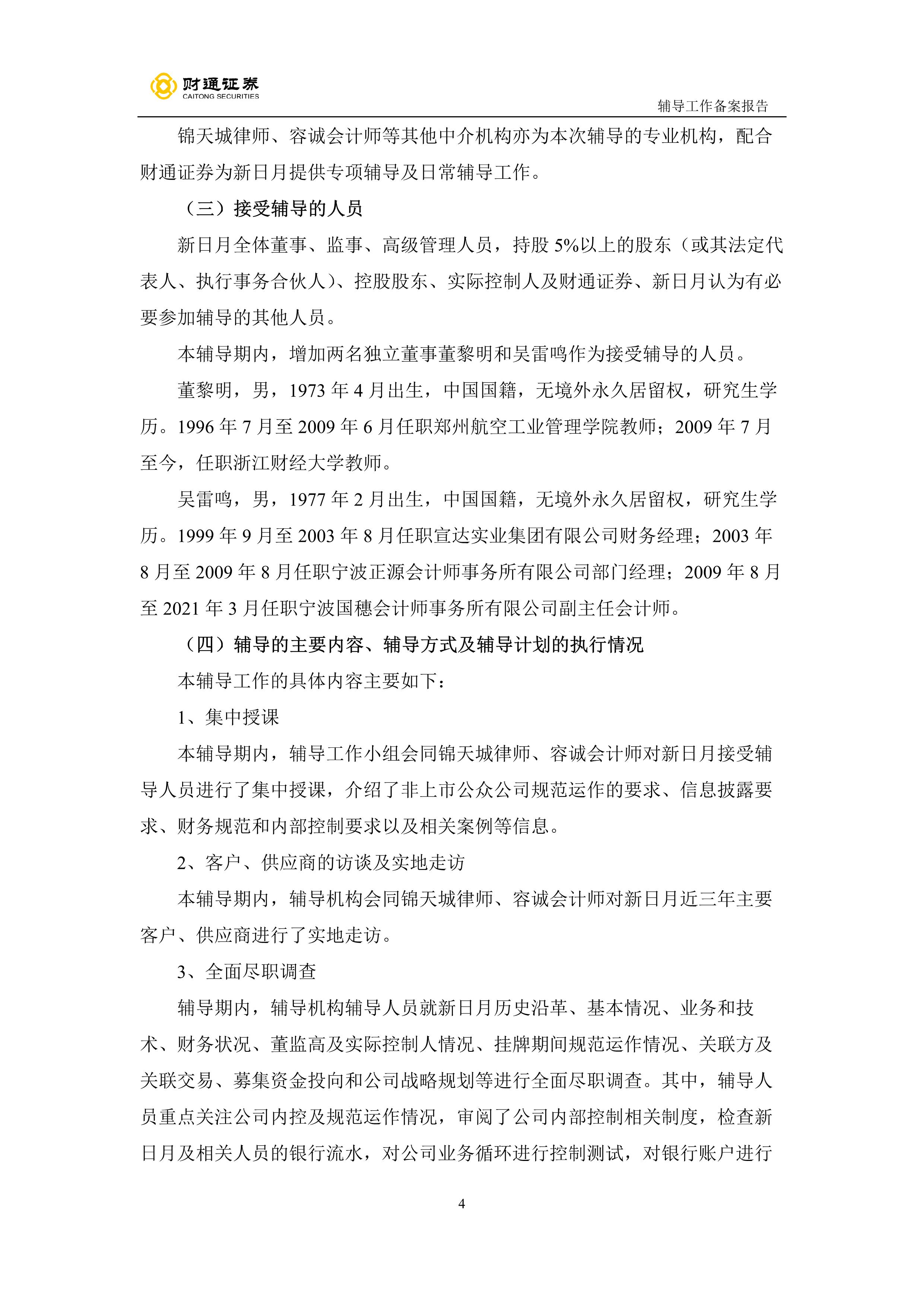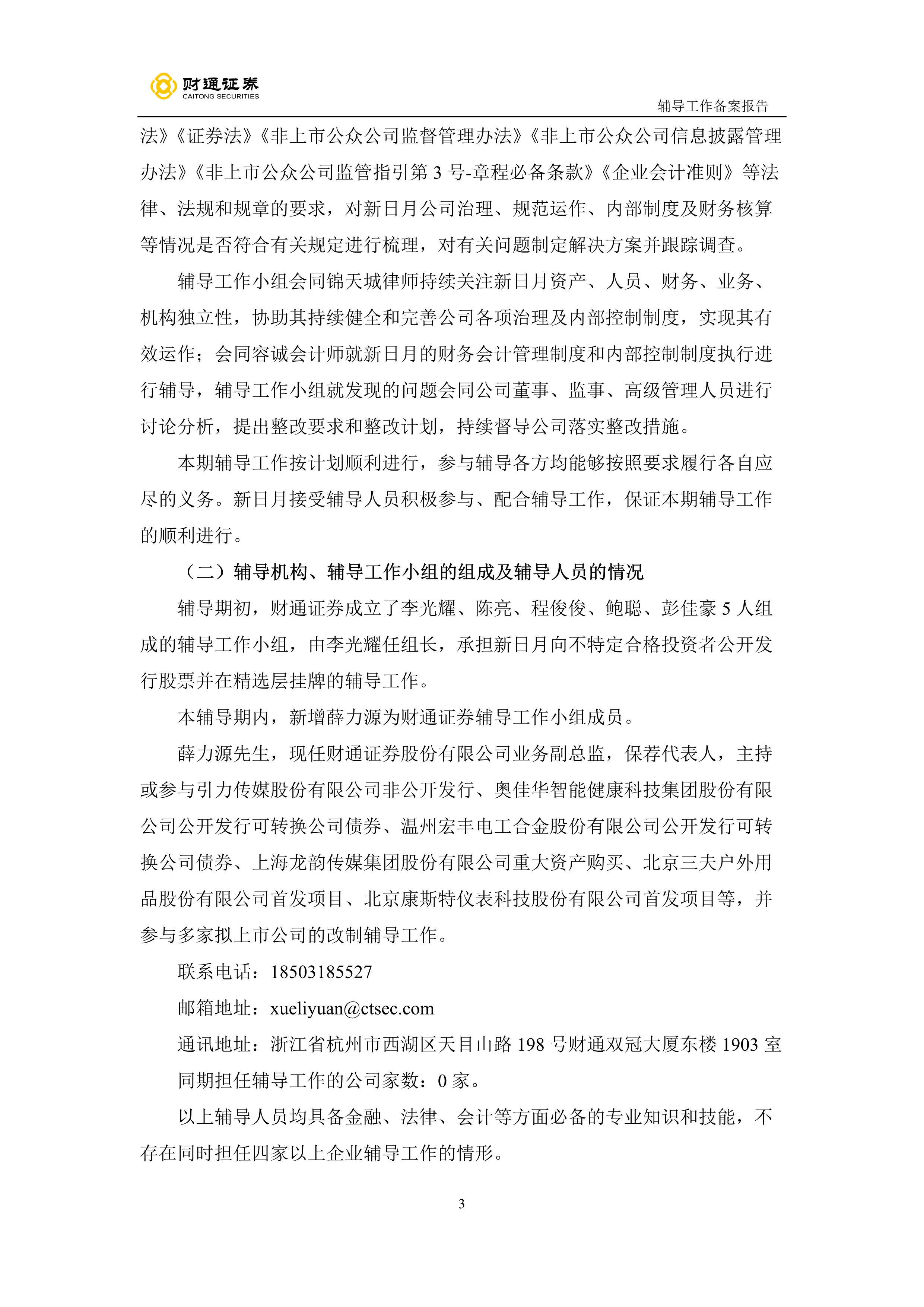 财通证券股份有限公司关于宁波新日月酒店物业股份有限公司之辅导工作备案报告(第一期)