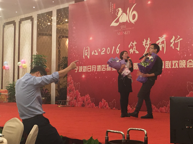 晚宴上新日月的家人们开怀畅饮,无话不谈。伴随着五等奖、四等奖到一等奖、特等奖的开出,会场也接近白热化。大家纷纷自发排队报名上台展示自己的才艺,总经理王小荣也破例演唱了两首保留曲目《敢问路在何方》、《月亮代表我的心》,大家纷纷上来伴舞助兴,场面异常和谐,掌声、喝彩声不绝于耳!