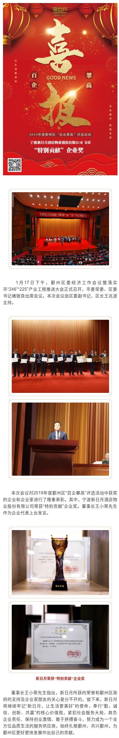 新日月被鄞州区委、区政府授予“特别贡献”企业奖